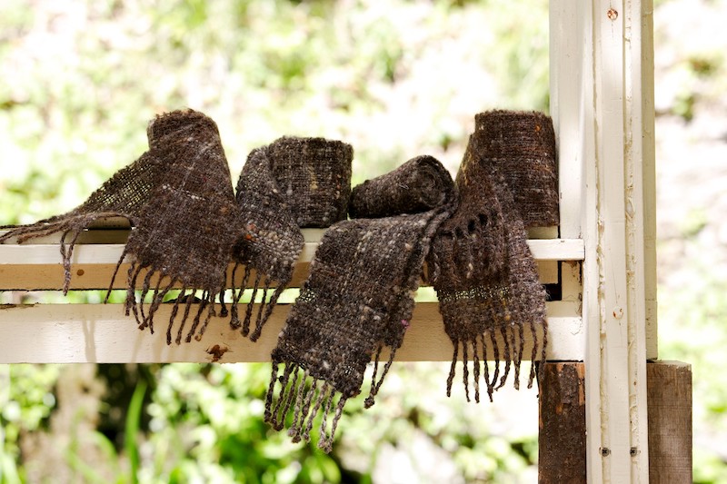 完成した作品はタピストリーとしてそのまま飾ったり、マフラーや服に仕立てて着て楽しんだり、椅子の座やクッション、小物なども作ることができます。