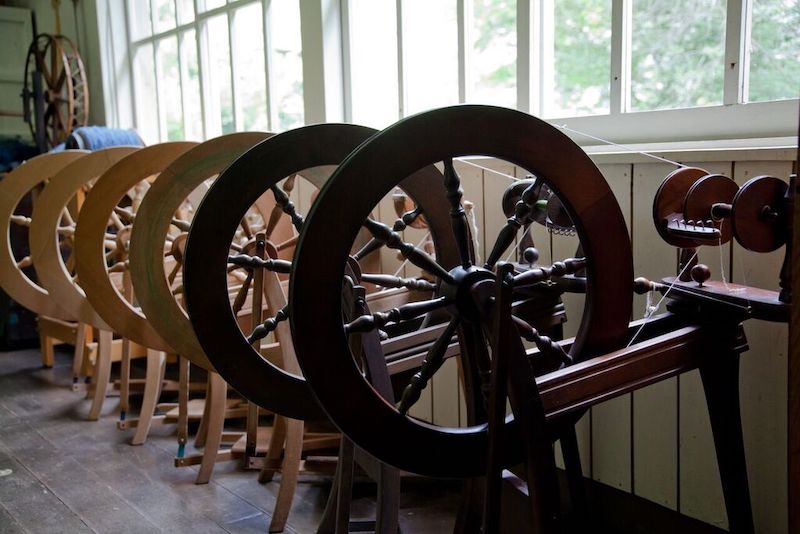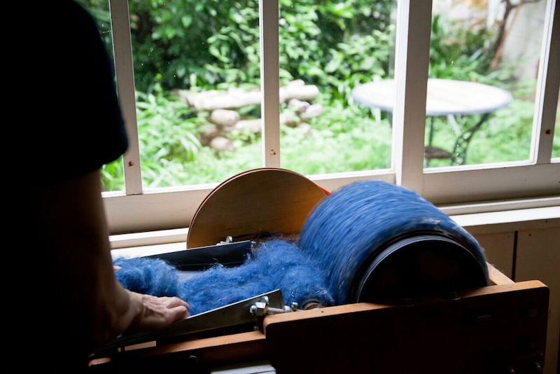 電動カーダー、ハンドカーダー、糸巻きスピンドルなど必要な道具はすべてそろっています。