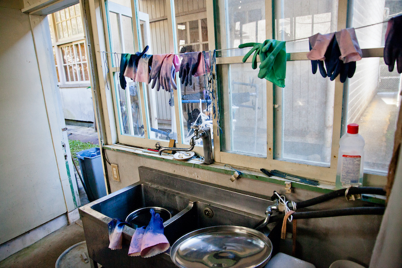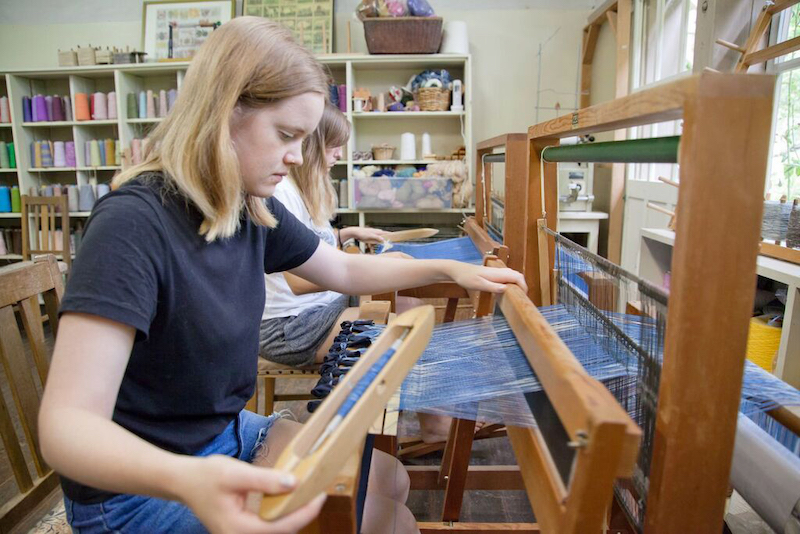 手織り・手紡ぎ工房は校舎1階の教室です。